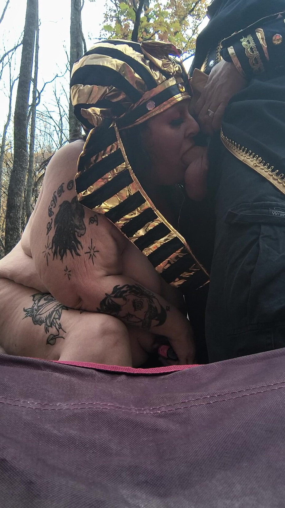 Her mouth full of his cock he's the only cock to make her pleased sucking on that tree