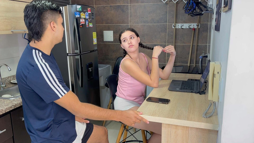 My little stepsister is super concentrated in her classes, since they are about to end the school year and she has to do assignments and pass exams, I distract her and seduce her to fuck her, while she is there talking to her teacher. She is seduced by me and I end up cumming in her ass.