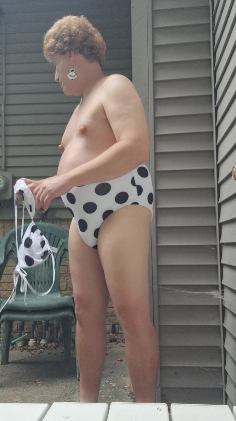 Michigan'da serin bir bulutlu gün, ama bu nine Vicki'nin yeni mayosuyla dışarıda güneş banyosu yapmasını durdurmayacak. Ateşli genç adam ona yağ püskürtüp sonra başka bir şey sıkmak ister mi?